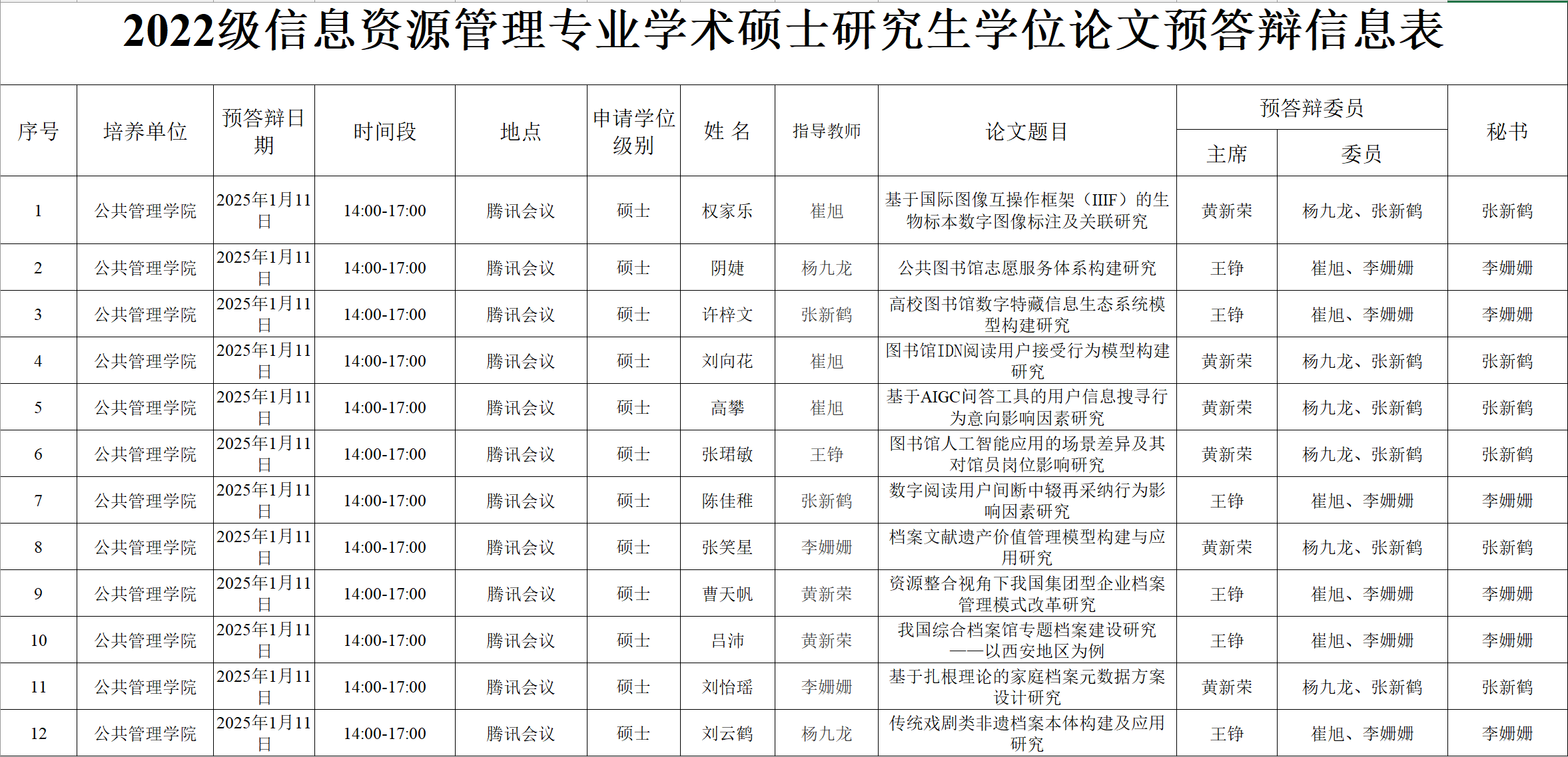 (2022级信息资源管理方向学术硕士研究生学位论文预答辩信息表)
