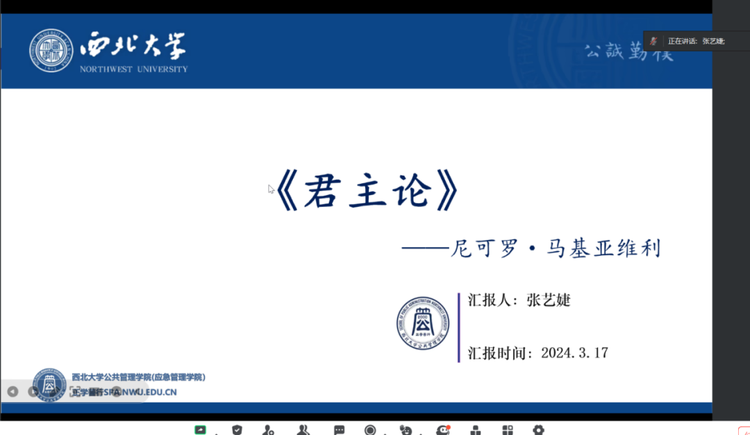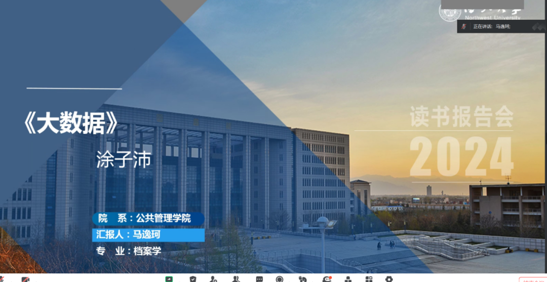 2024年3月17日,我院线上举办了2024年第4期正学读书会。西北大学565net必赢2021级档案学专业硕士研究生马逸珂、2021级图书馆专业硕士研究生蒋星、2021级图书馆专业硕士研究生贺秉花、2021级图书馆专业硕士研究生杨佳欣、2021级图书馆专业硕士研究生张艺婕分别作为主讲人进行读书汇报,2023级公共管理专业韦东增博士担任评议人,部分研究生旁听了此次会议。
