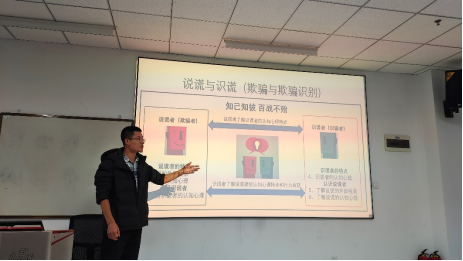 李贺博士讲述的题目是《谎言识别中的社会经济地位偏见及认知加工机制:印象形成的视角》。李贺老师为同学们介绍了说谎与识谎的定义与场景,通过对自己设计实验的说明与展示带领同学们从印象形成的过程中辨析谎言识别,并探索社会经济地位在此过程中的影响。