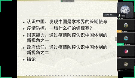何君安副教授围绕“国家治理能力与政府信任:通过疫情防控认识中国的新视角”这一主题,指出国家能力才是疫情防控的最关键之处。他从国家能力的类型、国家能力与各种维度的组合模式进行说明,强调疫情的防控反映出了我国治理的脆弱性,如疫情开始阶段网络治理、信息发布等问题。他认为,政府信任是国家能力强弱的重要影响因素。最后,何老师提出,中国有自己的社会运行规律和逻辑,在今后,还需要大规模的、扎实的实证研究,在多种场景下对各种理论学说在中国的适用性进行检验。
