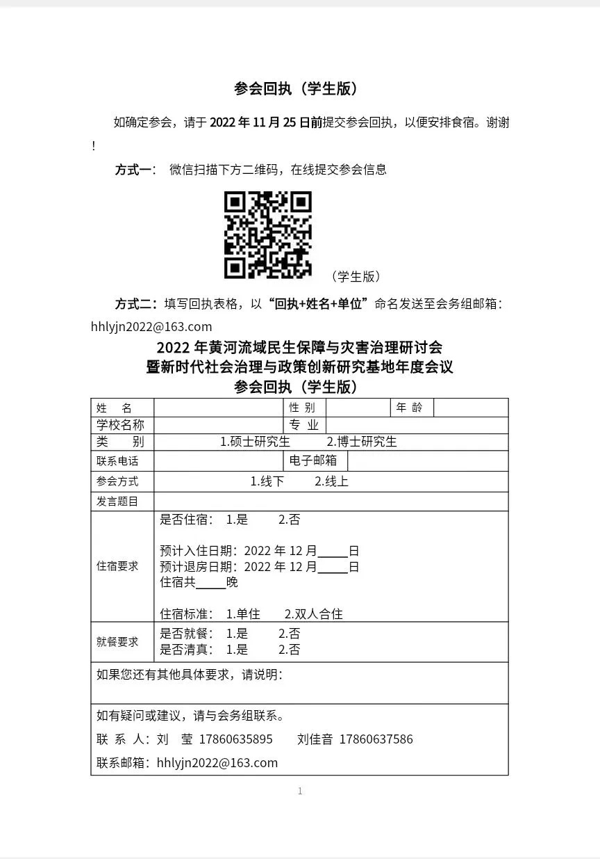 会议联系人:曹玉梅 15665856969 陈玉成 13129905089 刘 莹 17860635895(研究生论坛,微信同号)刘佳音 17860637586(研究生论坛,微信同号)会议邮箱:hhlyjn2022@163.com