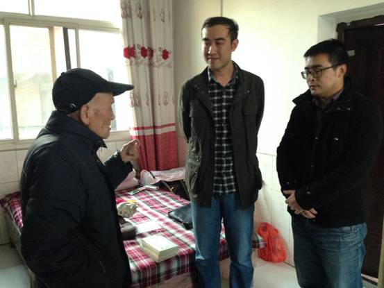 2015年11月26日下午,我校规划处与公管院教师代表携同学生代表来到长安区镐京村,探望和慰问了居住于此的我校93岁高龄的薛克良(笔名徐来)老校友。