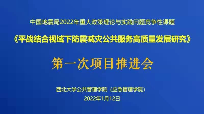 1月12日,西北大学应急管理学院的中国地震局2022年课题项目组在线举办了《平战结合视域下防震减灾公共服务高质量发展研究》的第一次项目推进会。项目研究团队就研究框架、政策挖掘、文献梳理、调研安排等进行了深入的讨论。